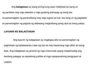 Tula pa rin ang ginagamit na paraan ng pagsasaad ng damdamin at mga argumento sa ginagawang pagtatalo. Lakandiwa Isang mapagpalang araw mga panauhin. Ang balagtasan ay uri ng pagtatalo ng dalawang magkaibang panig ukol sa isang paksa.