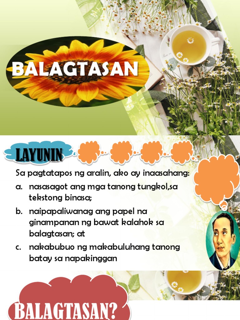 Magbigay ng hinuha sa kung ano ang ibig sabihin ng mga taludtod na hinango sa akdang binasa. Ang balagtasan ay uri ng pagtatalo ng dalawang magkaibang panig ukol sa isang paksa. Karaniwang Bagay mga bagay sa paligid na maituturing na mahalaga.