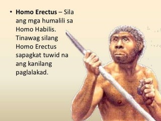 PANAHONG PALEOLITIKO TINATAYANG MULA 500 0007000 BCE 3. Sa anong aspeto nagkakatulad ang mga sinaunang kabihasnan sa daigdig batay sa pagsisimula ng mga ito. SINAUNANG URI NG PAMUMUHAY NG MGA TAO Pagkaraang lumitaw ng mga HOMO species partikular ang mga HOMO HABILIS noong dakong 25 milyong taon na ang nakakaraan nagsimula na rin ang PANAHONG PALEOLITIKO.