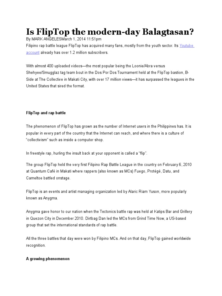 From the Bronx to the Top of Nintendo Reggie Fils-Aim. Indeed one can claim fliptop rap battles are balagtasan on steroids. 2Ang ibat ibang smbahan ay dpat makialam sa mga disisyon ng Gobyerno.