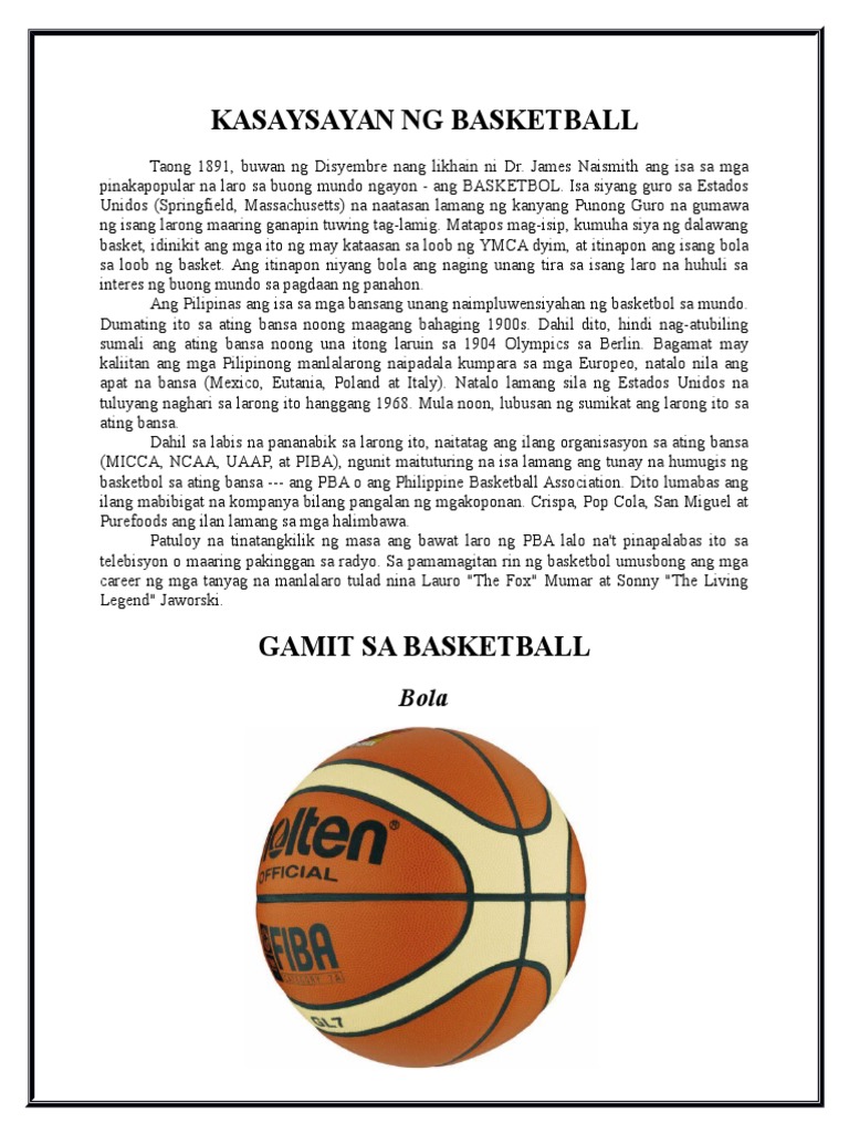 Ang basketball na imbento ni James Naismith noong 1891 ay orihinal na paraan ng pagpapanatiling abala ang mga mag-aaral sa panahon ng malamig na buwan ng taglamig. Maikling kasaysayan ng basketball. Panuntunan ng laro ng basketball isama ang sumusunod na cost mahusay na surges.