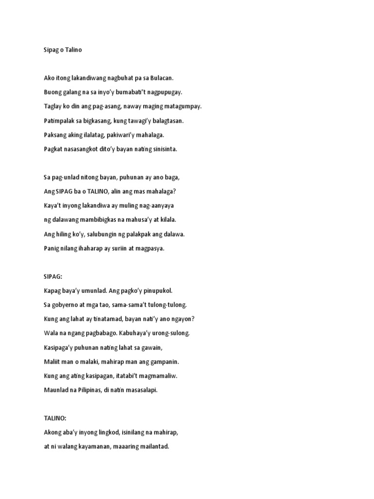 Balagtasan - Sipag o Talino. Download PDF - Alin Ba Ang Mas Mahalaga balagtasan d4pq5978g9np. Alin and Higit na Mahalaga Wikang Filipino o Wikang English.